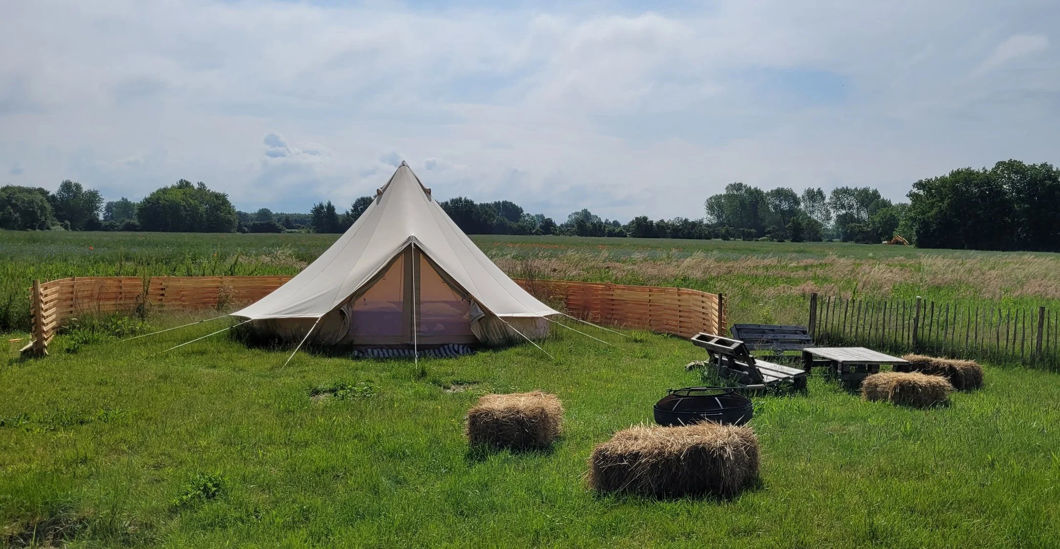 The cozy glamping tent offers you a stay in nature with a view over the Baltic Sea once you step out of the tent in the morning. It accommodates 2 people. You have access to the indoor kitchen and bathroom.